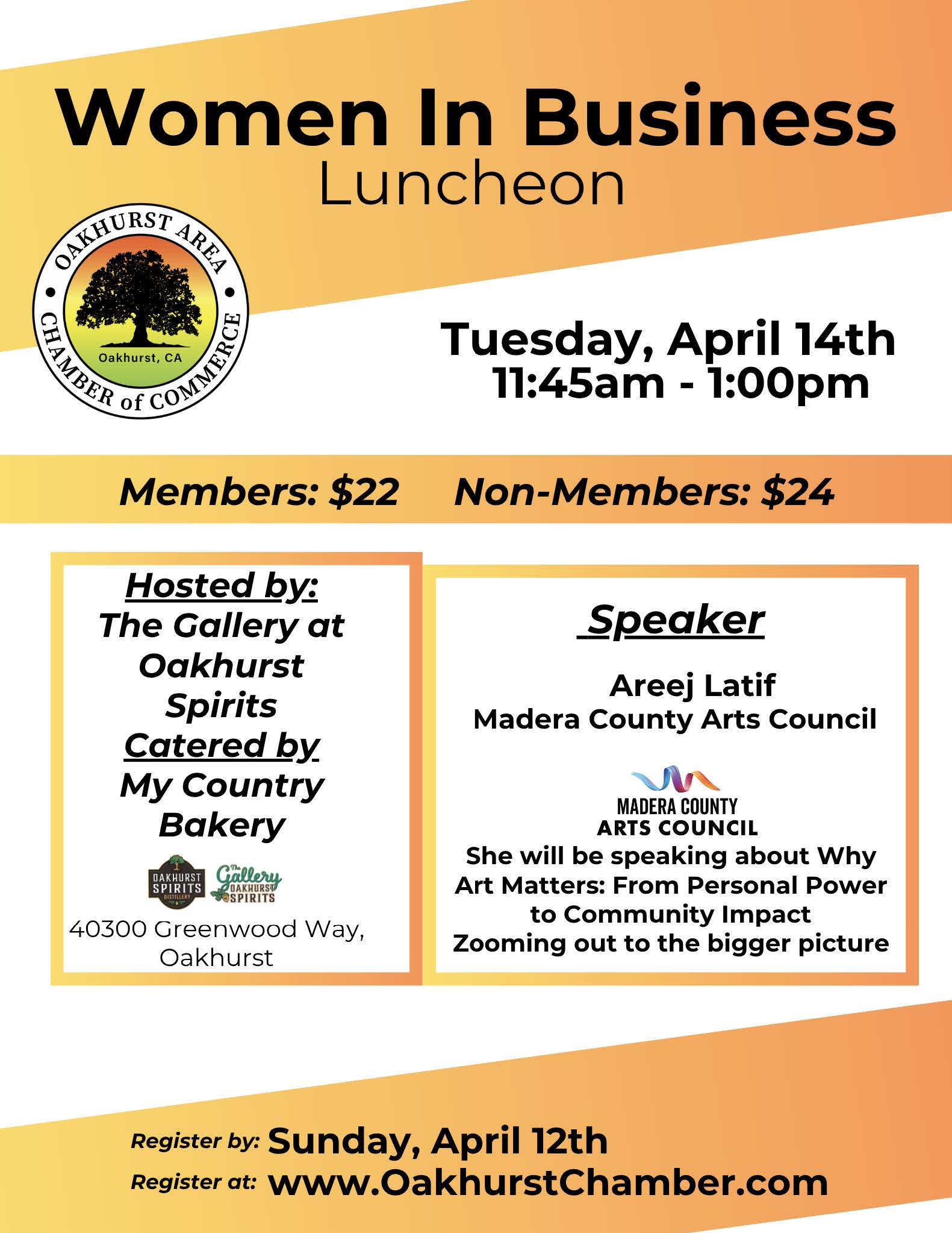 Come join us on April 14th from 11:45am to 1:00pm at The Gallery at Oakhurst Spirits.