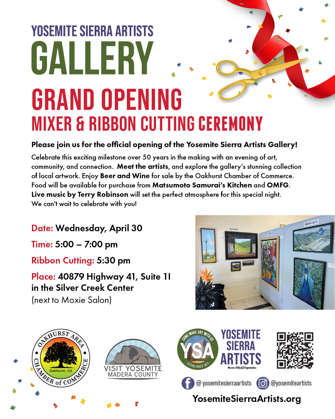 Join the community as we celebrate the grand opening of the new art gallery by Yosemite Sierra Artists!